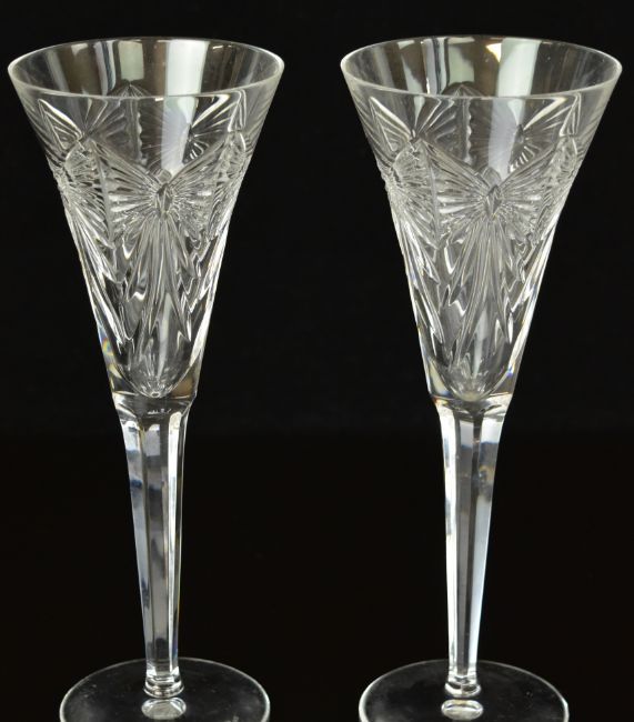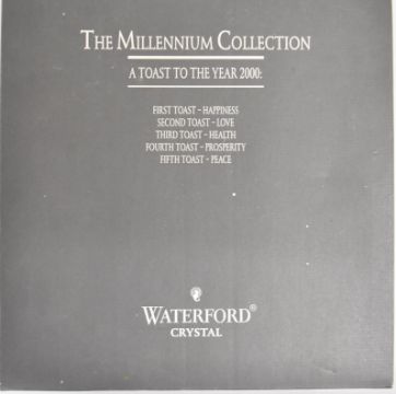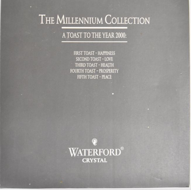 Ten drinking glasses comprising a pair of Waterford Crystal The Millennium Collection cut glass champagne flutes, in original box and a set of eight Villeroy & Boch wine glasses, 15cm tall.