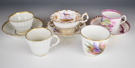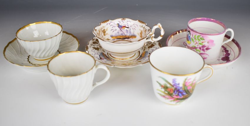 Collection of 19th/20thC decorative tea ware including Coalport, Crown Derby, George Jones interior decorated with rose, first period Worcester / Binns, lustre work etc