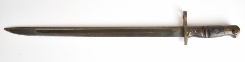 British 1913 pattern WW1 Remington bayonet with 42.5cm fullered blade, scabbard & frog. PLEASE NOTE:- Before bidding please ensure that you are fully aware of any law regarding ownership and of any limitations on shipping of this item