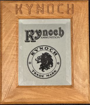 Eley Kynoch shop display or advertising mirror with 'Kynoch Ammunition Kynoch Trade Mark' to the bevelled glass mirror and 'Kynock' to the oak frame, 36.5 x 31cm