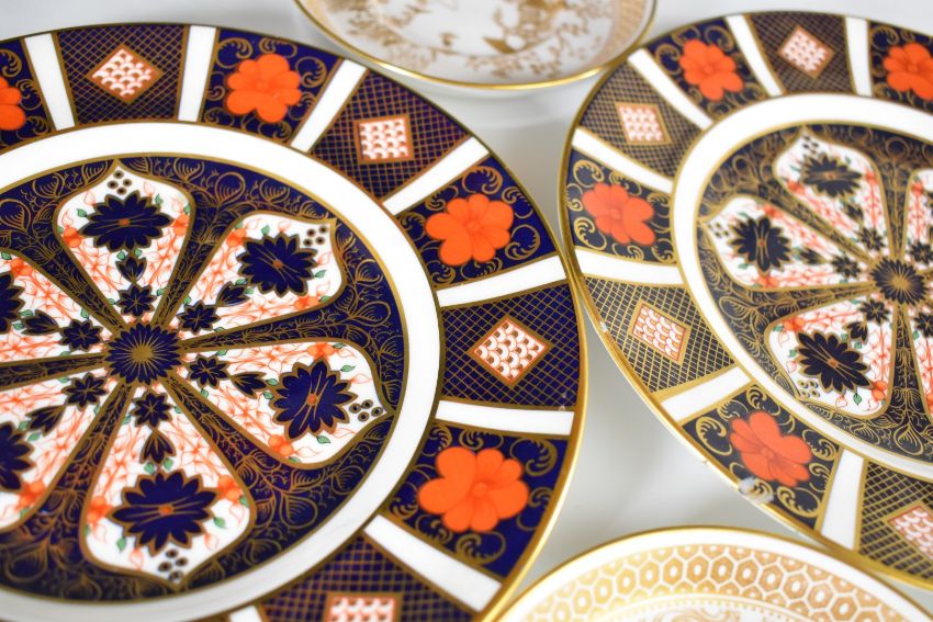 Royal Crown Derby Imari 1128 pattern plates and a Spode coffee set, 15 pieces, tallest 22cm