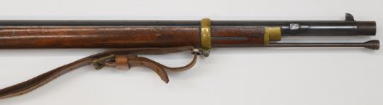Adler .58 muzzle loading percussion hammer action gun with adjustable pop-up sights, brass trigger guard and butt plate, leather sling, steel ram-rod and 33 inch smooth bored barrel, overall length 123cm, serial number 152. PLEASE NOTE THAT A VALID RELEVANT FIREARMS/SHOTGUN CERTIFICATE IS REQUIRED TO HANDLE/PURCHASE THIS ITEM.