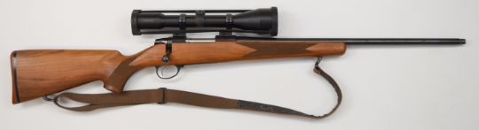Sako M591 .243 bolt-action rifle with chequered semi-pistol grip and forend, raised cheek piece, sling, Swarovski Habicht 8x56 scope and 23.5 inch barrel, overall length 107cm, serial number 863949. PLEASE NOTE THAT A VALID RELEVANT FIREARMS/SHOTGUN CERTIFICATE IS REQUIRED TO HANDLE/PURCHASE THIS ITEM.