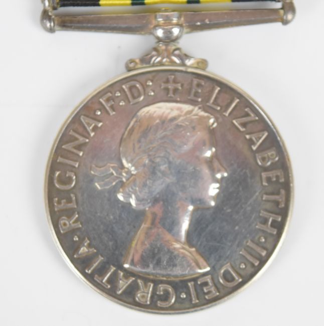 British Army EIIR Africa General Service Medal with clasp for Kenya, named to 22946047 Signalman R. H Warne, Royal Signals, the medal naming has an extra impressed number 2 visible to the front of his number, together with a London County Council medal