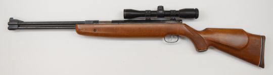 Weihrauch HW77K .22 under-lever air rifle with adjustable trigger, chequered semi-pistol grip, raised cheek piece and AGS 4x32 Mil Dot scope, serial number 1609345.