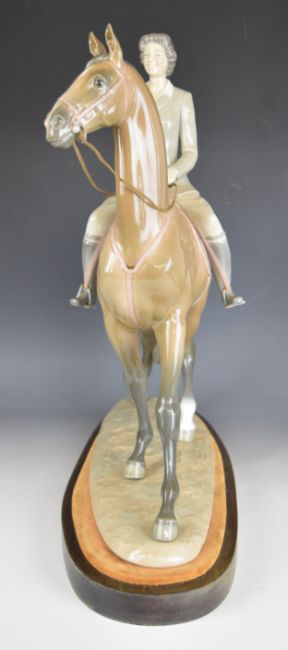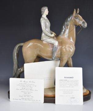 Lladro signed limited edition 2/100 GB issue mounted rider Queen Elizabeth II by Don Julio Ruiz, with certificate and plinth, H47cm