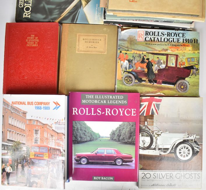 Rolls-Royce and other vintage car interest books and collectables, including Rolls-Royce Enthusiasts' Club technical manual 1978, Rolls-Royce Bulletins dated September 1936, June 1937, January 1954, January 1956, July 1956 and January 1957, 20 Silver Ghosts by Phil May, 1910/11 Rolls-Royce catalogue, Rolls-Royce The Living Legend by Post Motor Books, The Life of Sir Henry Royce by Pemberton, Rolls-Royce Memories by Buist, Modern Motors by Rutter, signed copy of National Bus Company 1968-1989 by Birks, boxed Wolbro cycle lamp and an Aerograph spray gun