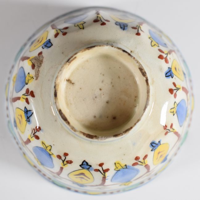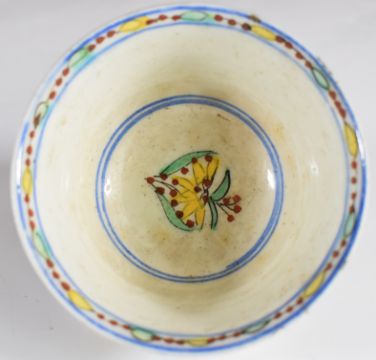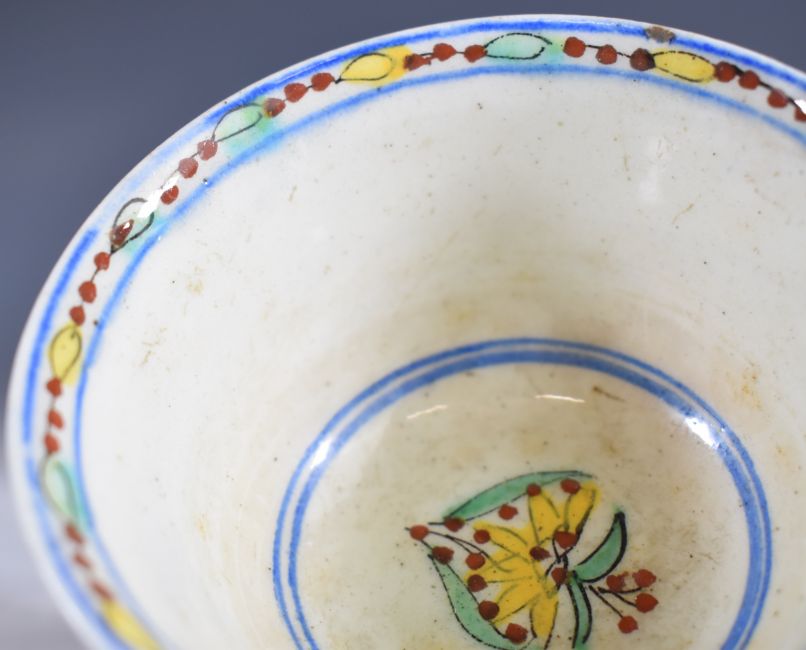 Two 18thC Turkish Kutahya polychrome decorated tea bowls, tallest 5cm