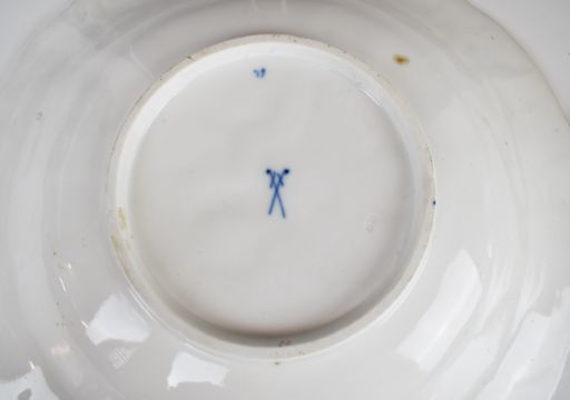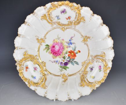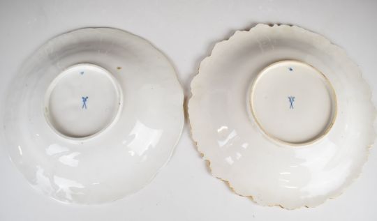 Two Meissen shallow dishes with relief moulded design and floral decoration, diameter 28cm