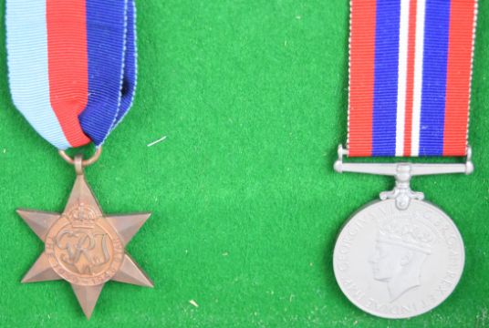 Two WW2 medal groups for the Royal Welsh Fusiliers, attributed to John Chadwick and Alfred Rudge. The first group comprising 1939-1945 Star, Italy Star, Defence Medal and War Medal, the other comprising 1939 /1945 Star, France and Germany Star, Defence Medal and War Medal, together with cap badges and hackle etc, all in a glazed cabinet, 66 x 46cm. Consigned by a family member