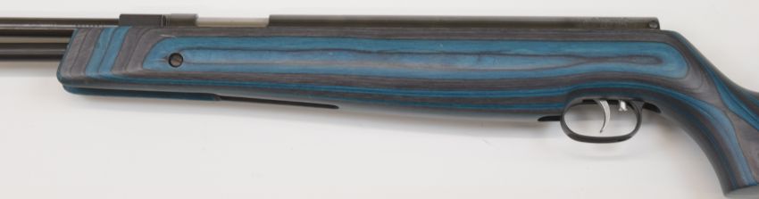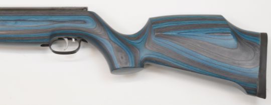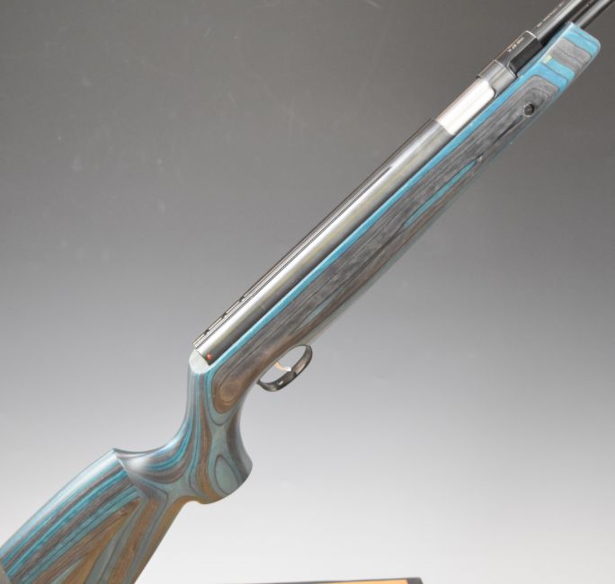 Weihrauch HW97K .177 underlever air rifle with blue laminated show wood stock, semi-pistol grip, raised cheek piece and adjustable trigger, serial number 2378851.