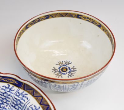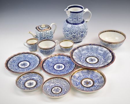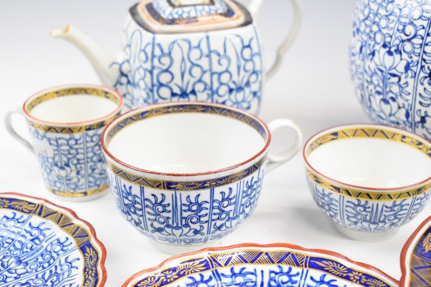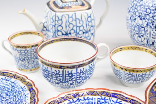 Worcester first period and later tea ware decorated in the Royal Lily pattern, with blue crescent mark to some, tallest 22cm