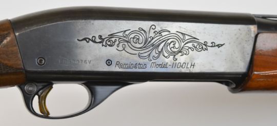 Remington Model 1100 LH 12 bore 3-shot semi-automatic shotgun with ornately carved and chequered semi-pistol grip and forend, engraved lock and bolt, vented rib and 25.5 inch barrel choked ¼, overall length 116.5cm, length of pull 35.5cm, serial number L939076V. PLEASE NOTE THAT A VALID RELEVANT FIREARMS/SHOTGUN CERTIFICATE IS REQUIRED TO HANDLE/PURCHASE THIS ITEM.