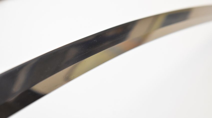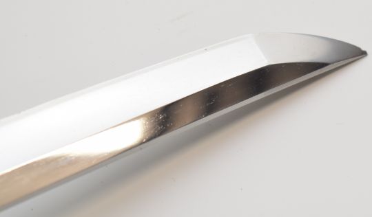 Japanese short sword with Mei to tang, bound grip with two menuki, decorated tsuba, 62cm curved blade with narrow hamon and scabbard. PLEASE NOTE:- Before bidding please ensure that you are fully aware of any law regarding ownership and of any limitations on shipping of this item