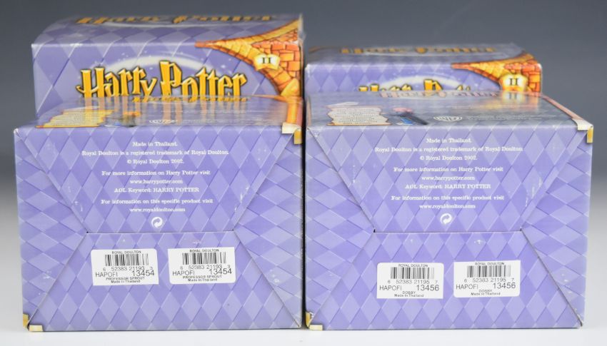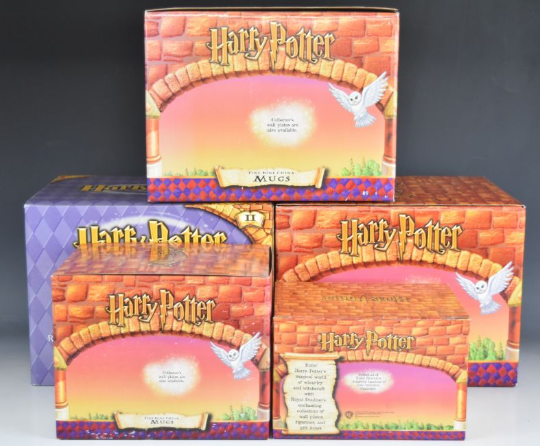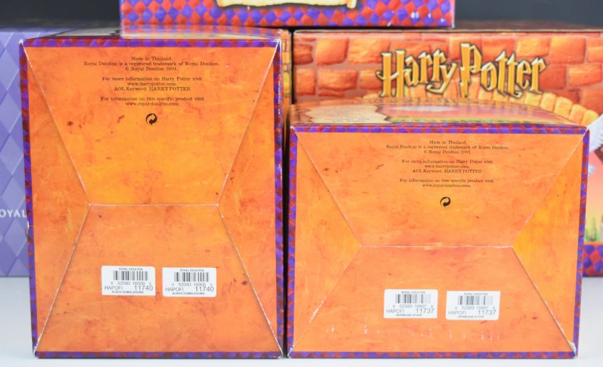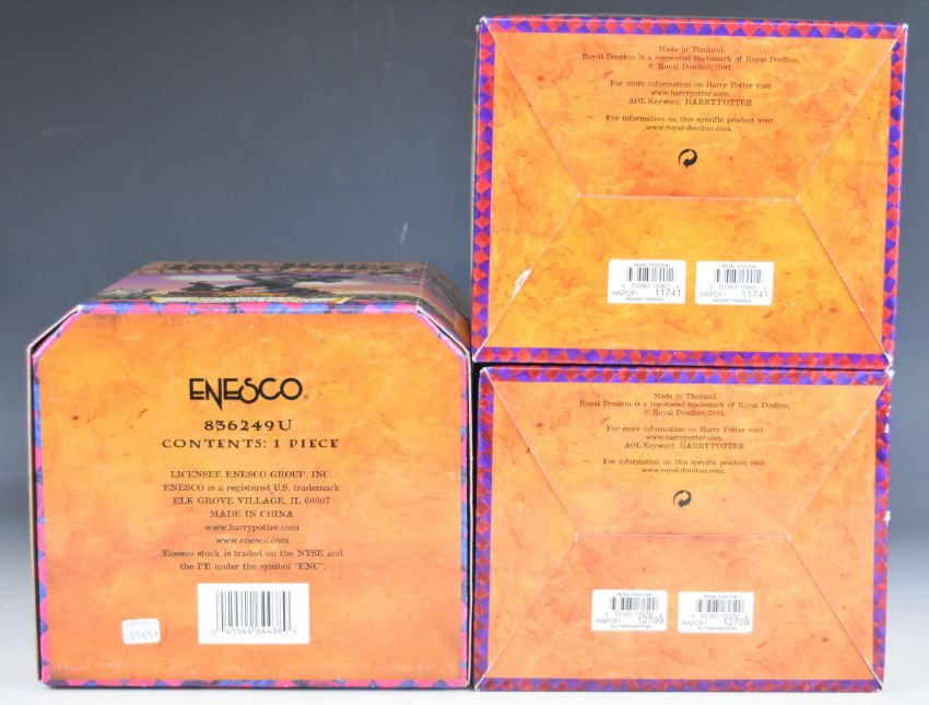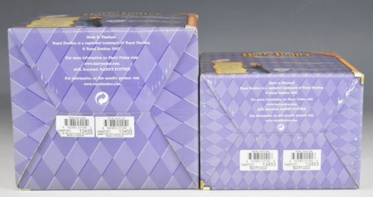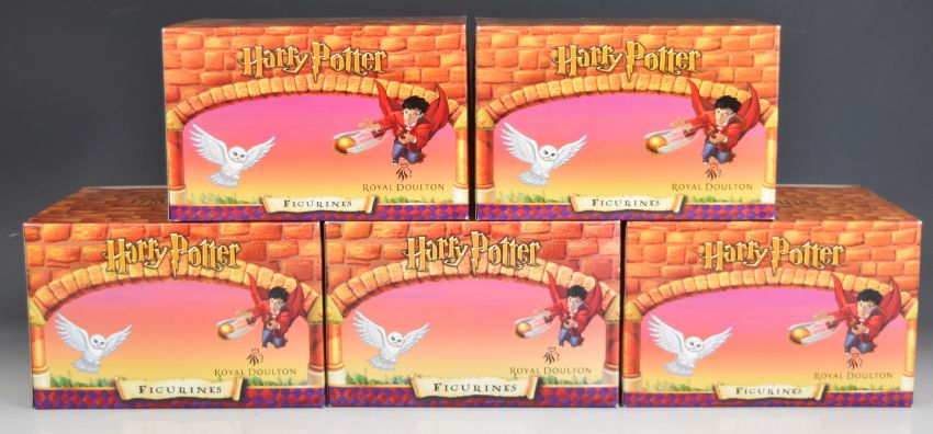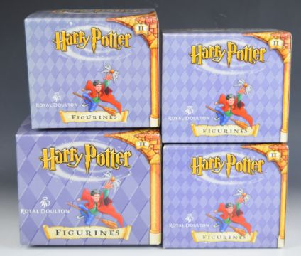 Royal Doulton Harry Potter twenty nine figures and models including Dursley Family Scene, Rescue in the Forbidden Forest, Journey to Hogwarts, Harry Reaches for the Golden Snitch, Gringott Banking Left, Gringott Banking Right, Harry 11th Birthday etc and an Ernest Troll figure, all boxed
