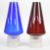 Two Per Lutken for Holmegaard Hygge tea light holders / lamps, one red and one blue, both with clear bases, 26cm tall.
