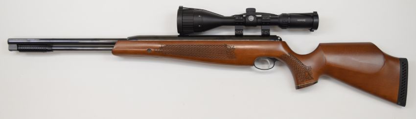 Air Arms TX200 .22 under-lever air rifle with carved semi-pistol grip and forend, adjustable trigger, raised cheek piece and Hawke Vantage 3-9x50 AO scope, serial number 151026, with Users Handbook.