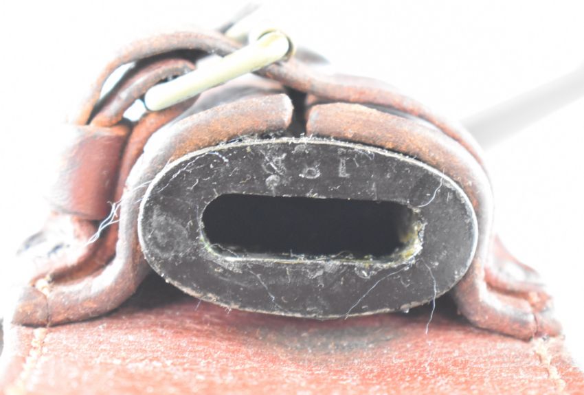 British 1913 pattern sword bayonet with wooden grips, some good stamps to ricasso, a 42.5cm single edged blade, scabbard and frog. PLEASE NOTE:- Before bidding please ensure that you are fully aware of any law regarding ownership and of any limitations on shipping of this item