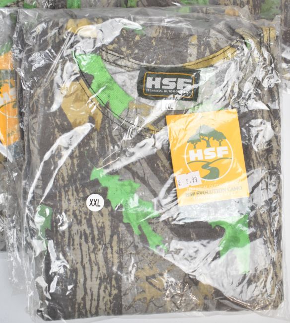 Twelve HSF Evolution Camo long sleeved camouflage t-shirts, all size XXL, all unworn in original packaging.