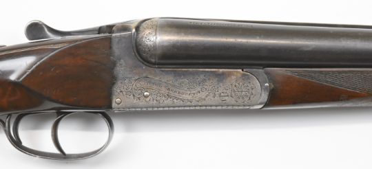 Victor Sarasquetta 12 bore side by side ejector shotgun with named and engraved locks, engraved underside, trigger guard, top plate, thumb lever and fences, chequered grip and forend, double trigger and named 26 inch barrels choked ¼ and improved cylinder, overall length 110cm, length of pull 38cm, serial number 222907PLEASE NOTE THAT A VALID RELEVANT FIREARMS/SHOTGUN CERTIFICATE IS REQUIRED TO HANDLE/PURCHASE THIS ITEM.
