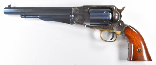 Uberti .44 six shot single action percussion revolver with brass trigger guard, wooden grips and 8 inch octagonal barrel, overall length 36.5cm, serial number 102561. PLEASE NOTE THAT A VALID RELEVANT FIREARMS/SHOTGUN CERTIFICATE IS REQUIRED TO HANDLE/PURCHASE THIS ITEM.