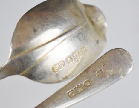 William IV and later hallmarked silver cutlery comprising dinner fork, two dessert forks, jam or similar spoon and six coffee or teaspoons, various dates and makers including Mappin & Webb, length of longest 29cm, weight of all items 229g
