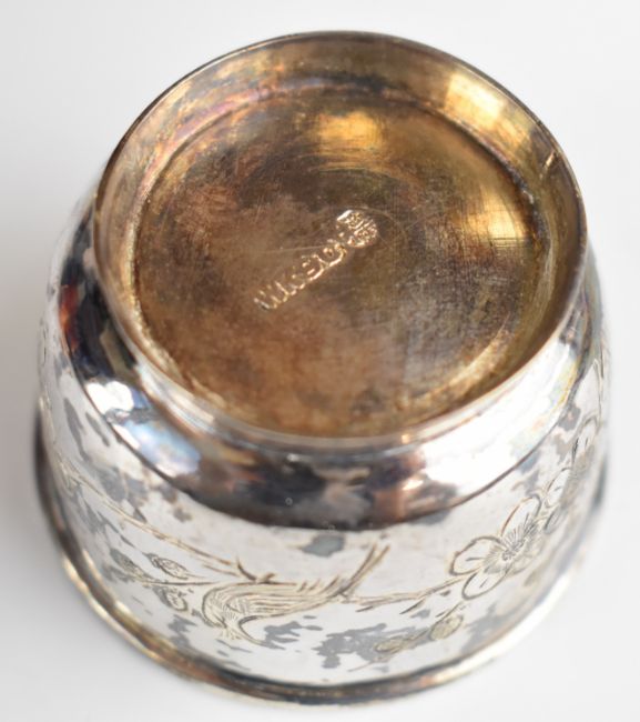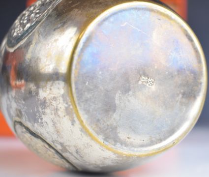 Two sets of Saint Hilaire novelty place card holders comprising frogs and snails, Chinese silver salt, silver ring, silver plated ice bucket and a silver plated drinks pourer