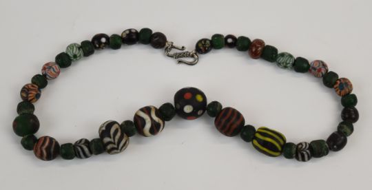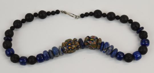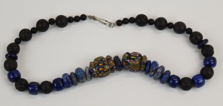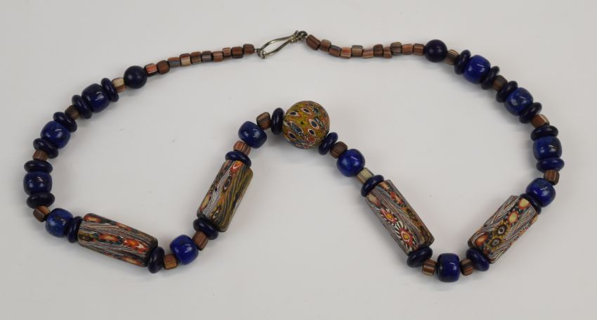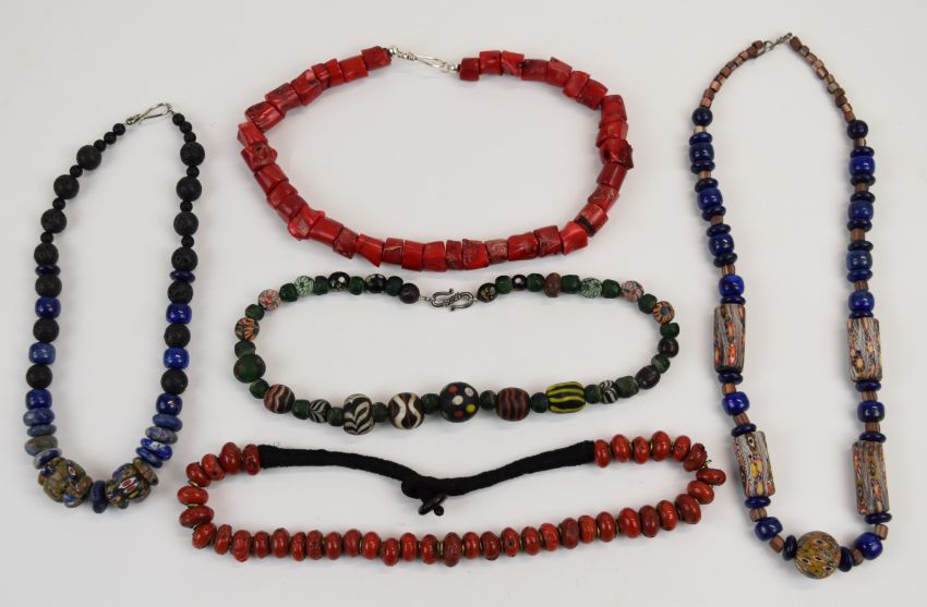 Five beaded necklaces including coral, glass, sodalite and millefiori, etc