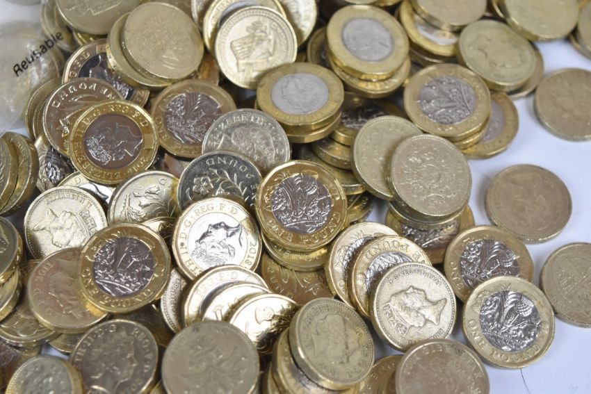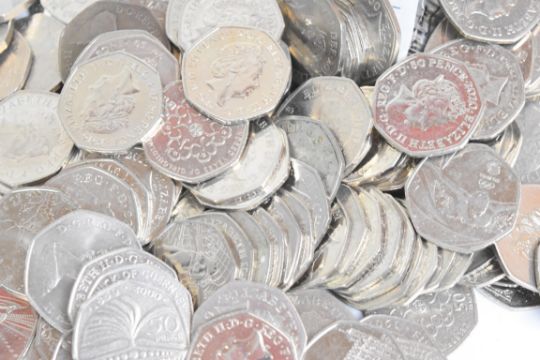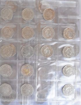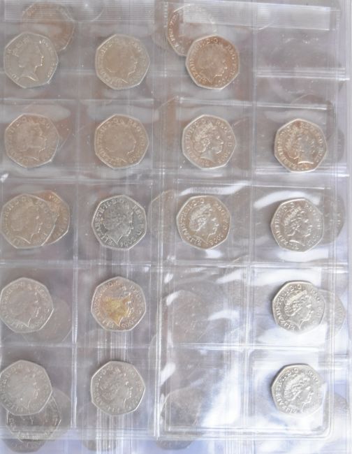 A large quantity of 50p and £1 coins in album and bags, current sterling and collectables, 1st and 2nd issues coinage