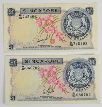 Four Singapore 1967-73 ND issue banknotes comprising two $1 and two $10