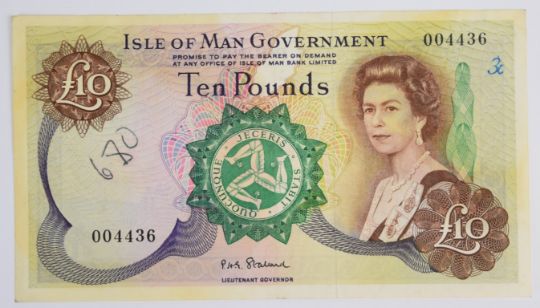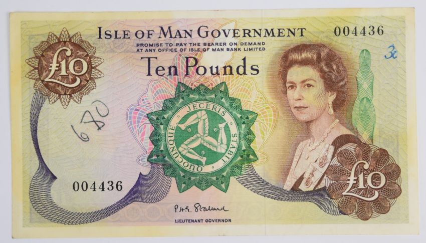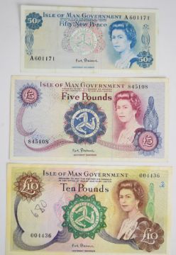 Three Isle of Man undated (1972) banknotes signed by P.H.G Stallard including 50 New Pence, £5 and £10