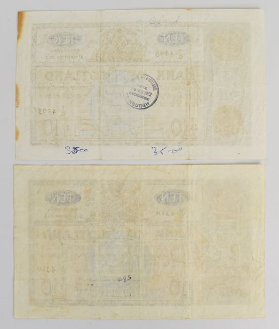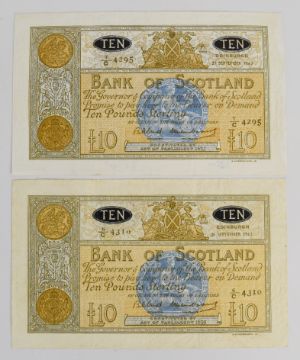Two Bank of Scotland 1963 £10 banknotes with prefixes 6/C and 7/C, both signed Bilsland & Watson