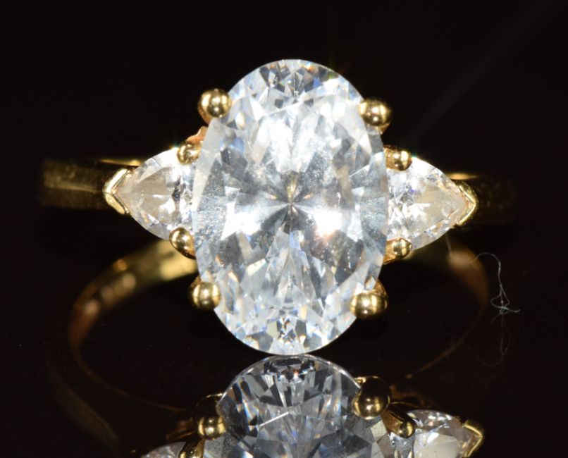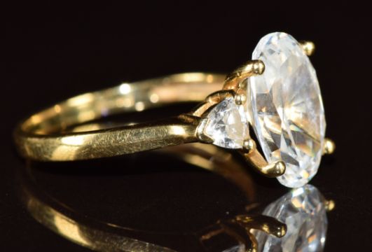An 18k gold ring set with cubic zirconia, 4.3g, size P