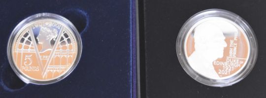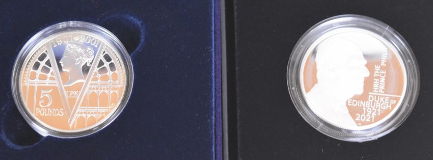 Seven silver proof commemorative crowns and 50p coins, all with certificates and cases