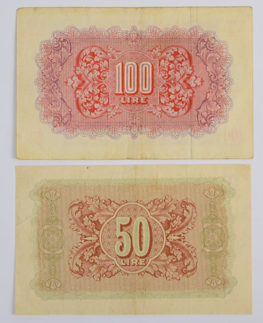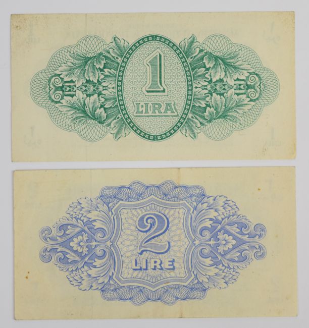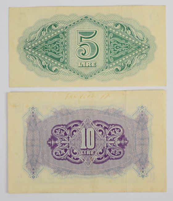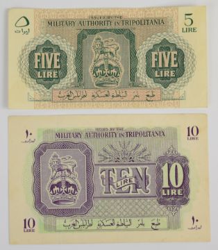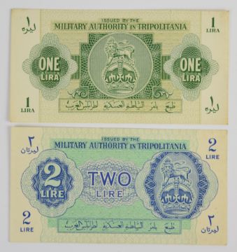 Six 1943 British Military Authority Tripolitania (Libya) banknotes, comprising 1-100 Lire