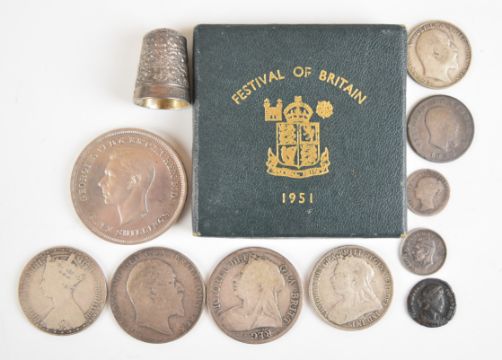 Approximately 63g of pre1920 silver coinage and a Festival of Britain 1951 Crown