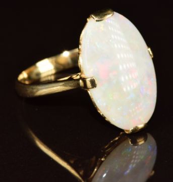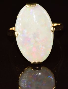 A 18k gold ring set with an oval opal cabcohon, 4.2g, size O