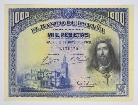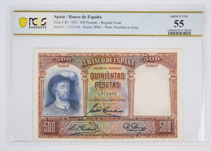 Five Spain 1925-31 500, 1000 Peseta banknotes including 1931 500 Pesetas PMG graded 55 'About Uncirculated'
