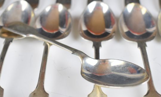 Edward VII set of twelve hallmarked silver fiddle pattern teaspoons, Sheffield 1907, length 13cm, weight 262g