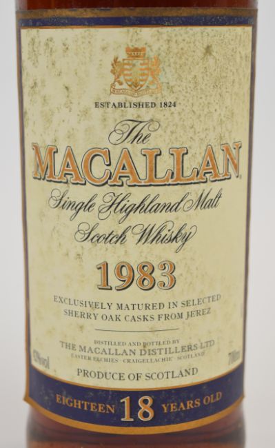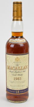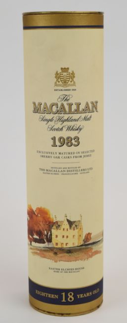 The Macallan 18 Years Old Single Highland Malt Scotch Whisky, 1983, 43% vol, 70cl, in original presentation tube. PLEASE NOTE ALL ALCOHOL & TOBACCO ITEMS ARE SUBJECT TO OVER 18 CHECK ON COLLECTION OR DELIVERY