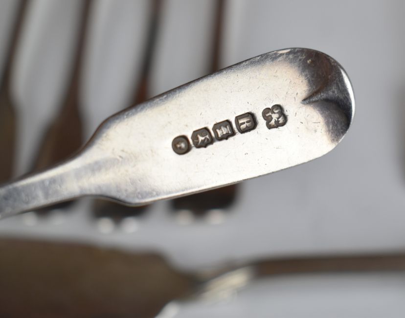 Georgian and later hallmarked silver fiddle pattern cutlery comprising four dessert forks, three teaspoons and a fiddle and thread pattern butter knife, various dates and makers, length of longest 19.5cm, weight of all items 285g