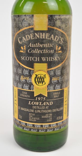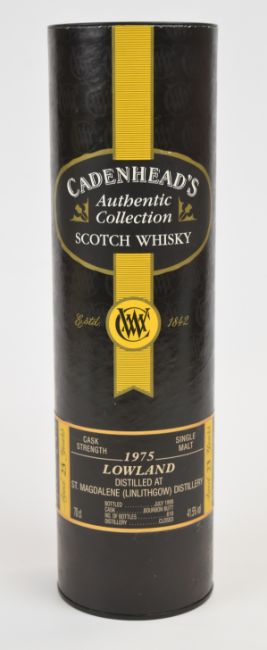 Cadenhead's Authentic Collection 24 year old Lowland Single Malt Scotch Whisky, distilled at St Magdalene Linlithgow Distillery 1975, 41.5% vol, 70cl, in original presentation tube. PLEASE NOTE ALL ALCOHOL & TOBACCO ITEMS ARE SUBJECT TO OVER 18 CHECK ON COLLECTION OR DELIVERY