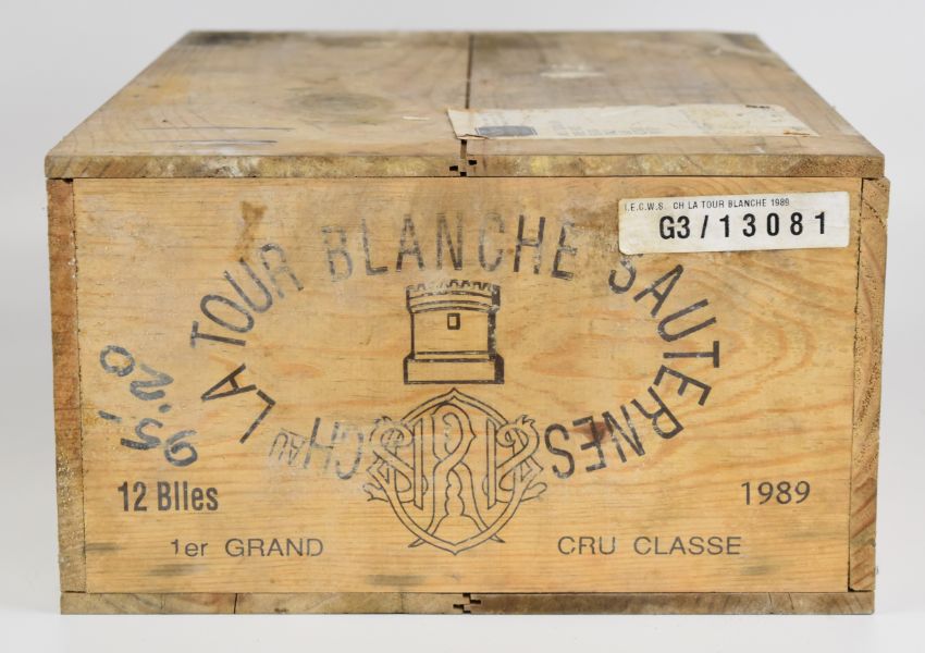 Twelve bottles of Chateau La Tour Blanche Sauternes 1er Grand Cru Classé 1989, in sealed case.PLEASE NOTE ALL ALCOHOL & TOBACCO ITEMS ARE SUBJECT TO OVER 18 CHECK ON COLLECTION OR DELIVERY