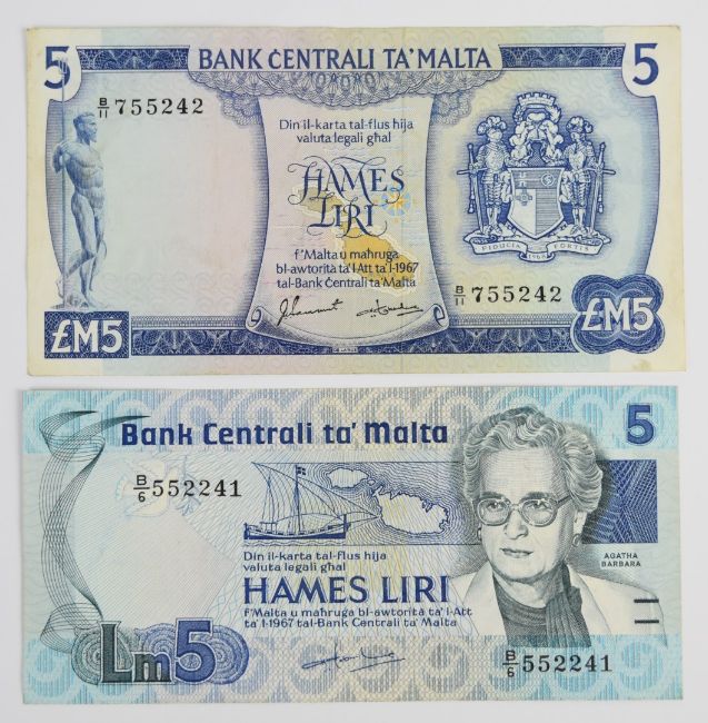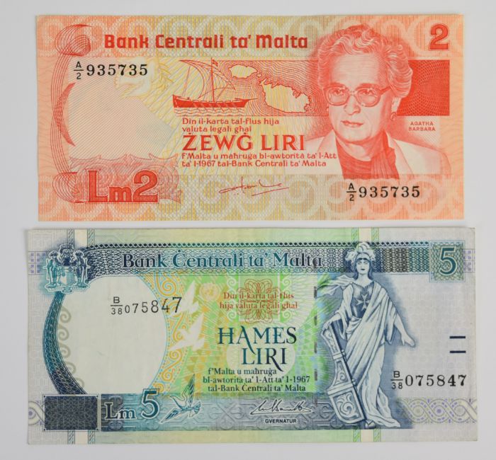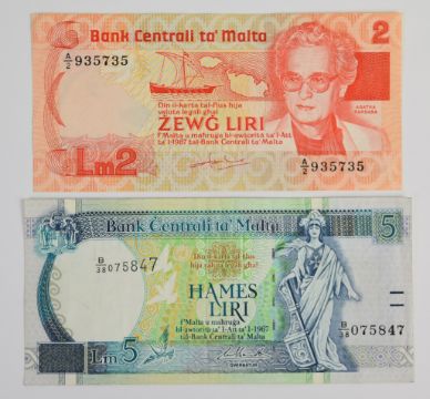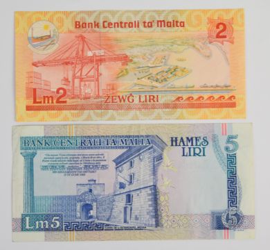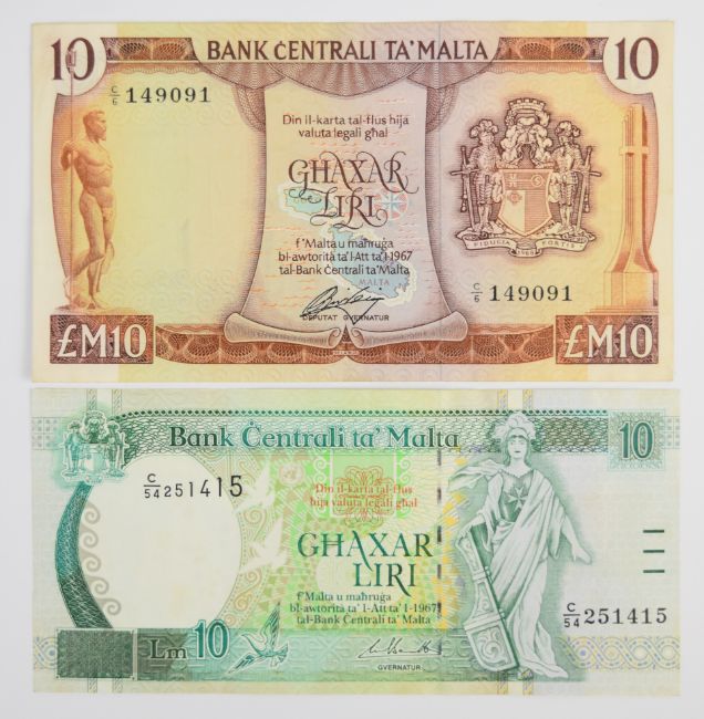 Ten Malta 1967, 1986 and 1994 issue banknotes including 1973 10 Liri and 1986 20 Liri