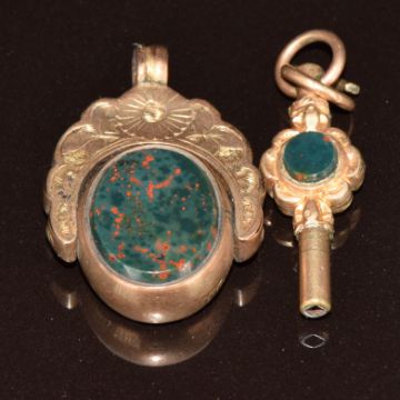 A 9ct rose gold swivel fob and Victorian pocket watch key