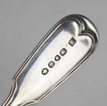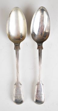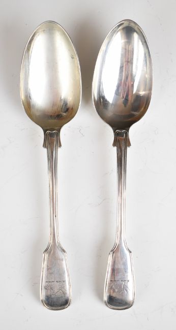 Pair of Victorian hallmarked silver fiddle and thread pattern table spoons, London 1849, maker's mark TH TH, length 22.5cm, weight 181g