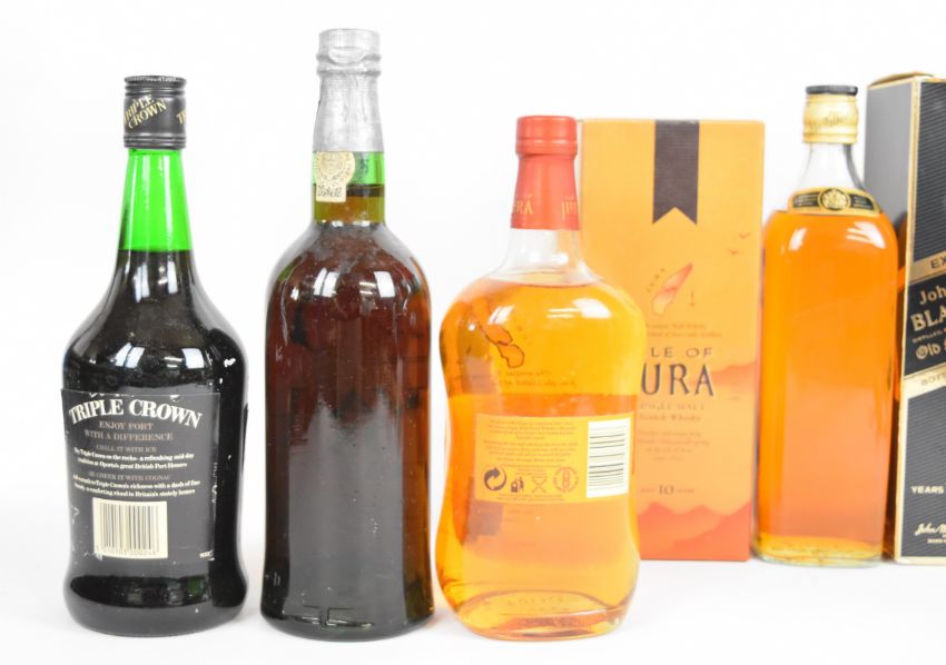Seven bottles of Port and mixed spirits to include Cockburn's 10 Year Tawny Port, Isle of Jura Single Malt and Johnnie Walker Black Label, all 70cl.PLEASE NOTE ALL ALCOHOL & TOBACCO ITEMS ARE SUBJECT TO OVER 18 CHECK ON COLLECTION OR DELIVERY