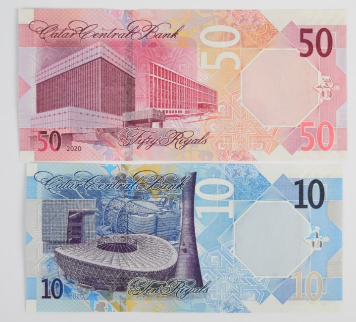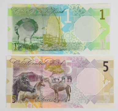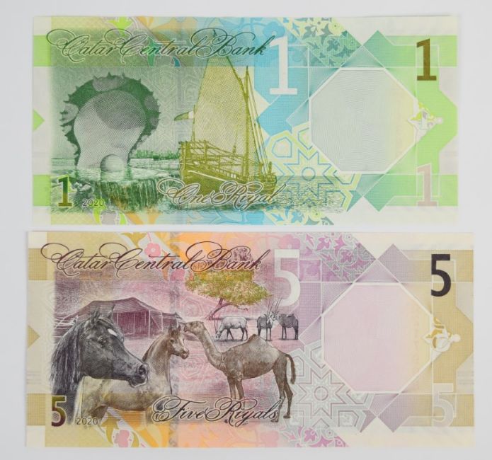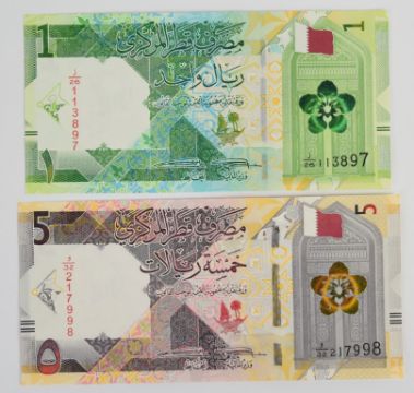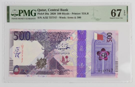 Seven Qatar 2020 banknotes comprising 1, 5, 10, 50, 100 and 200 Riyals plus a 500 Riyals PMG graded 67 'Superb Gem Uncirculated'
