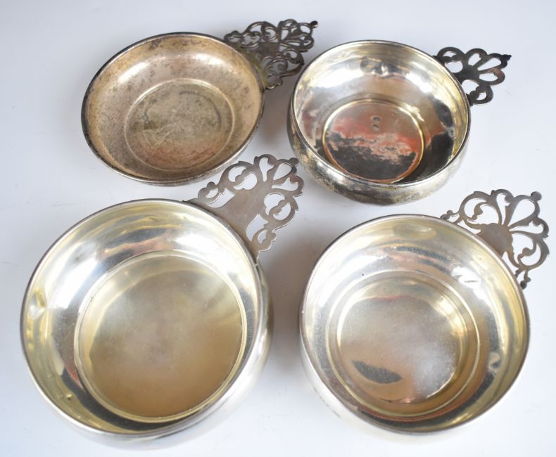 Four American silver single handled bowls, all marked sterling, makers include Newport, Underwood's and Wallace, length of largest 17cm, weight 361g