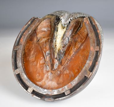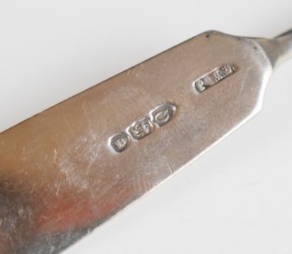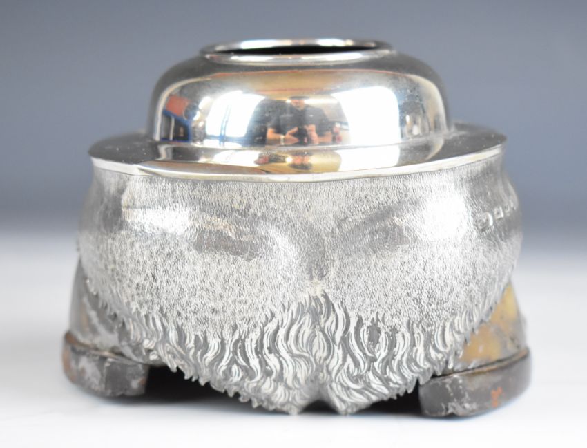 Victorian hallmarked silver mounted horse hoof inkwell, engraved '"Cornet" my first horse 1876-1897', Birmingham 1897, maker Thomas Hayes, length 15cm, together with a Victorian hallmarked silver butter knife